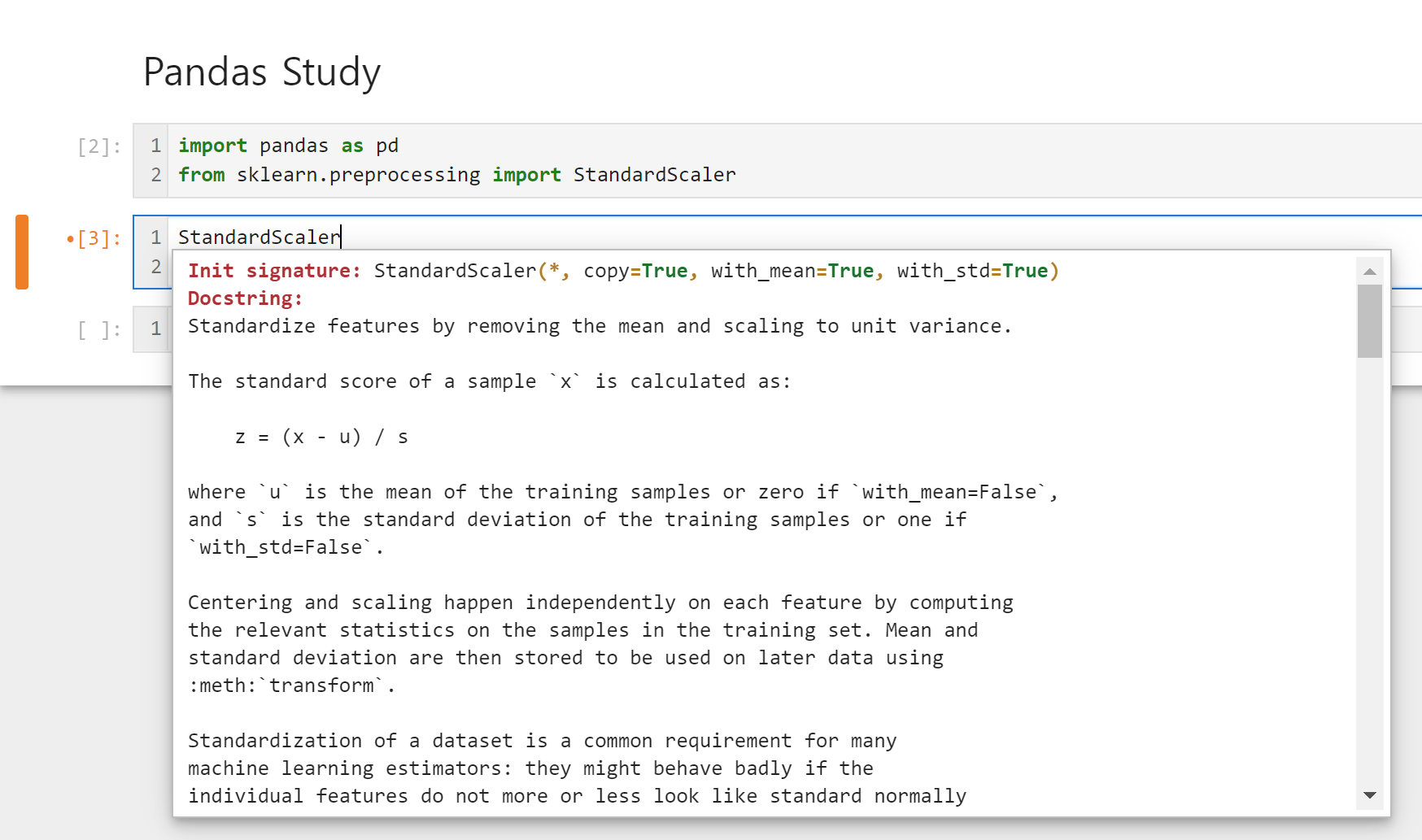 2. Shift + Tab : 함수의 설명을 보여준다 (Docstring)