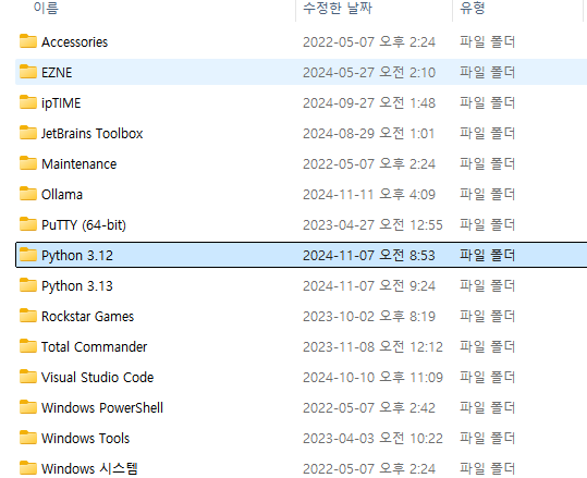 C:\Users\[사용자계정]\AppData\Roaming\Microsoft\Windows\Start Menu\Programs